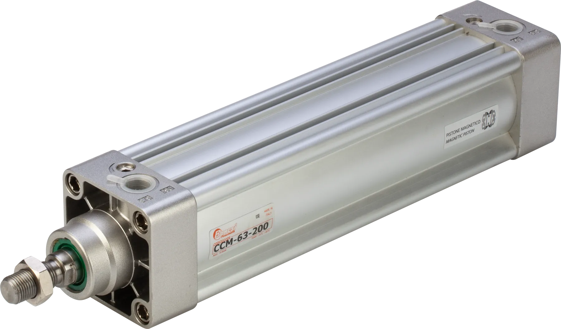 Il cilindro pneumatico è costituito da un corpo cilindrico, un pistone mobile al suo interno e delle guarnizioni che assicurano la tenuta dell’aria. Quando l’aria compressa viene immessa in una delle camere del cilindro, il pistone viene spinto nella direzione opposta, generando un movimento lineare. A seconda della configurazione, l’aria può essere utilizzata per muovere il pistone in una o entrambe le direzioni. I cilindri possono essere a semplice effetto, dove la forza dell’aria agisce in una sola direzione e il ritorno è garantito da una molla, o a doppio effetto, in cui l’aria viene utilizzata per muovere il pistone in entrambe le direzioni.