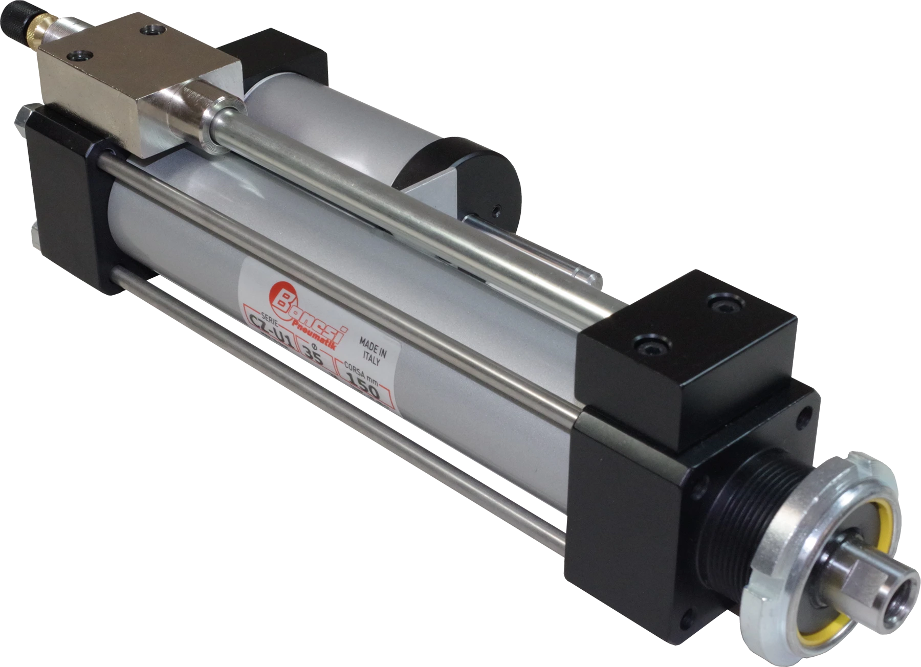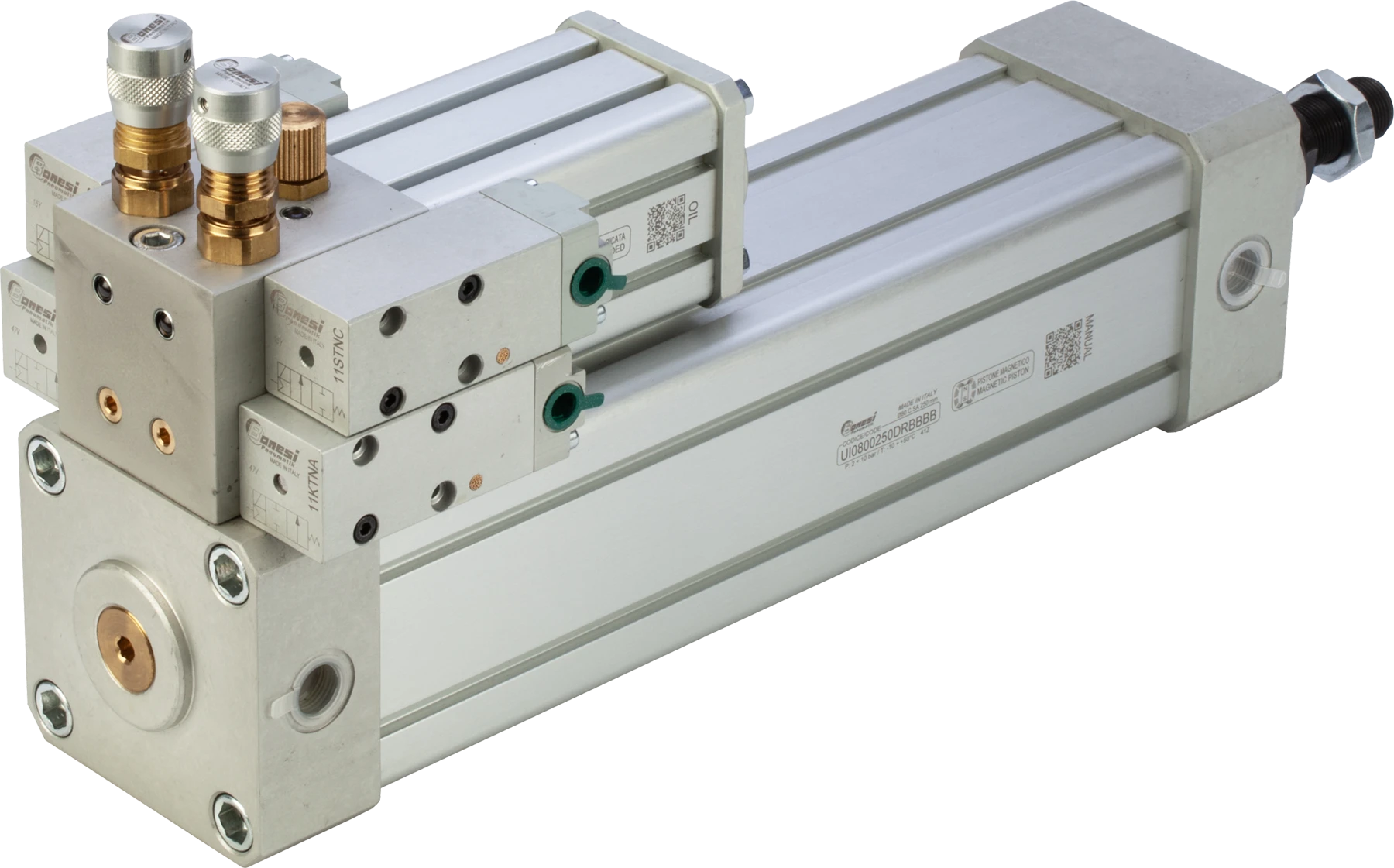 - Arresto preciso dello stelo in entrambe le direzioni di movimento mediante gestione, pneumatica o elettropneumatica, di valvole di stop