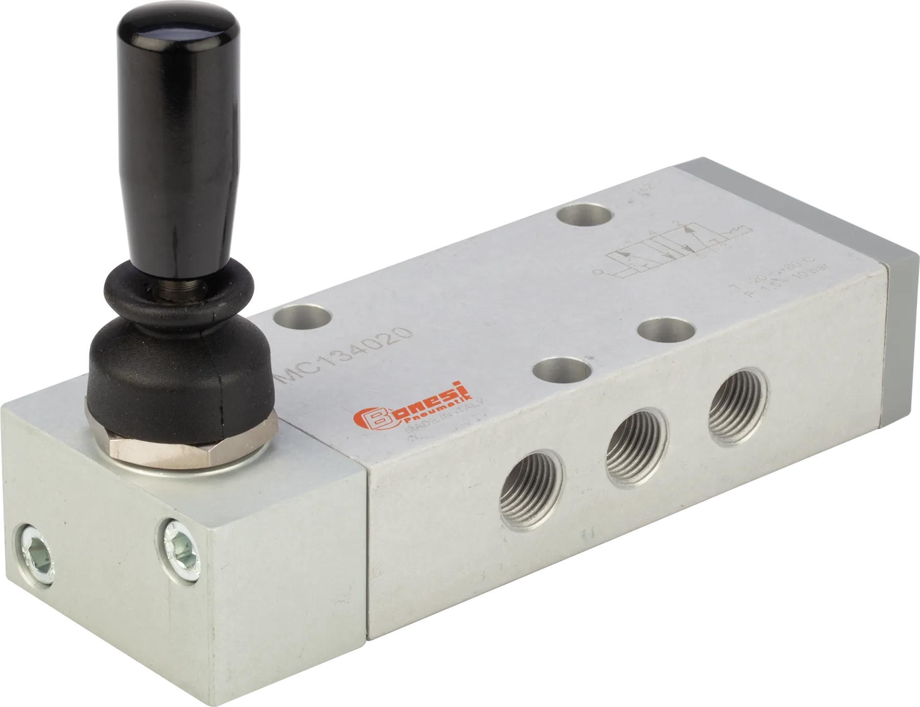 Il corpo è prodotto in lega di alluminio anodizzato, mentre le componenti interne in metallo assicurano affidabilità, robustezza e alte prestazioni. Le valvole Bonesi Pneumatik sono disponibili sia con comando meccanico che manuale, in versioni a spola o a otturatore, e vengono realizzate nelle taglie 1/8”, 1/4”, 3/8”.