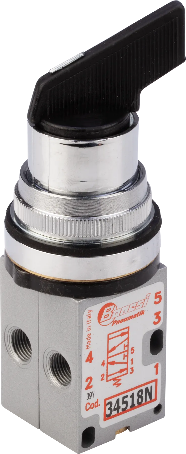Le valvole manuali ad otturatore della serie 340 offrono elevata affidabilità in termini di robustezza e grandi portate d’aria. Sono disponibili nelle versioni a leva e pulsante, 3/2, 5/2 e 5/3 vie, con connessioni a 1/8″ e presentano un corpo in zama. Fissaggio tramite ghiera di bloccaggio e fori presenti sul corpo valvola.