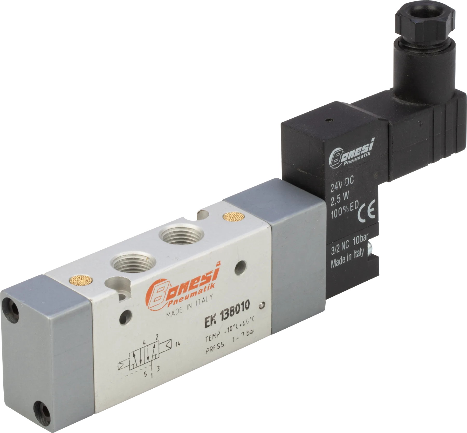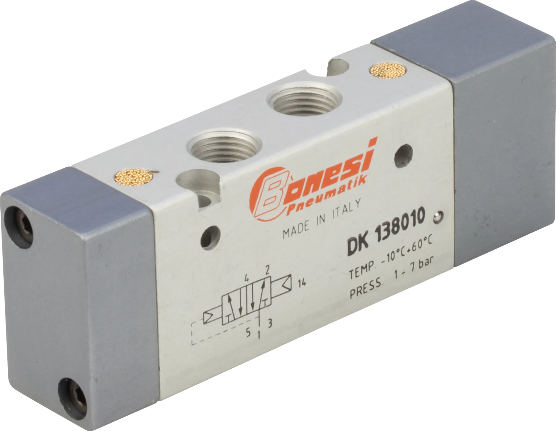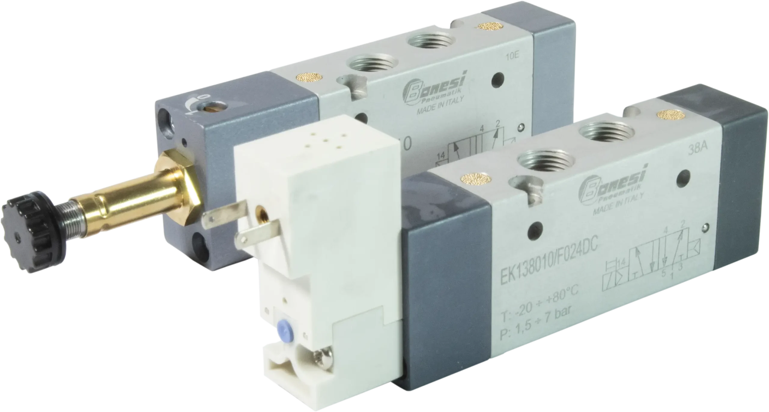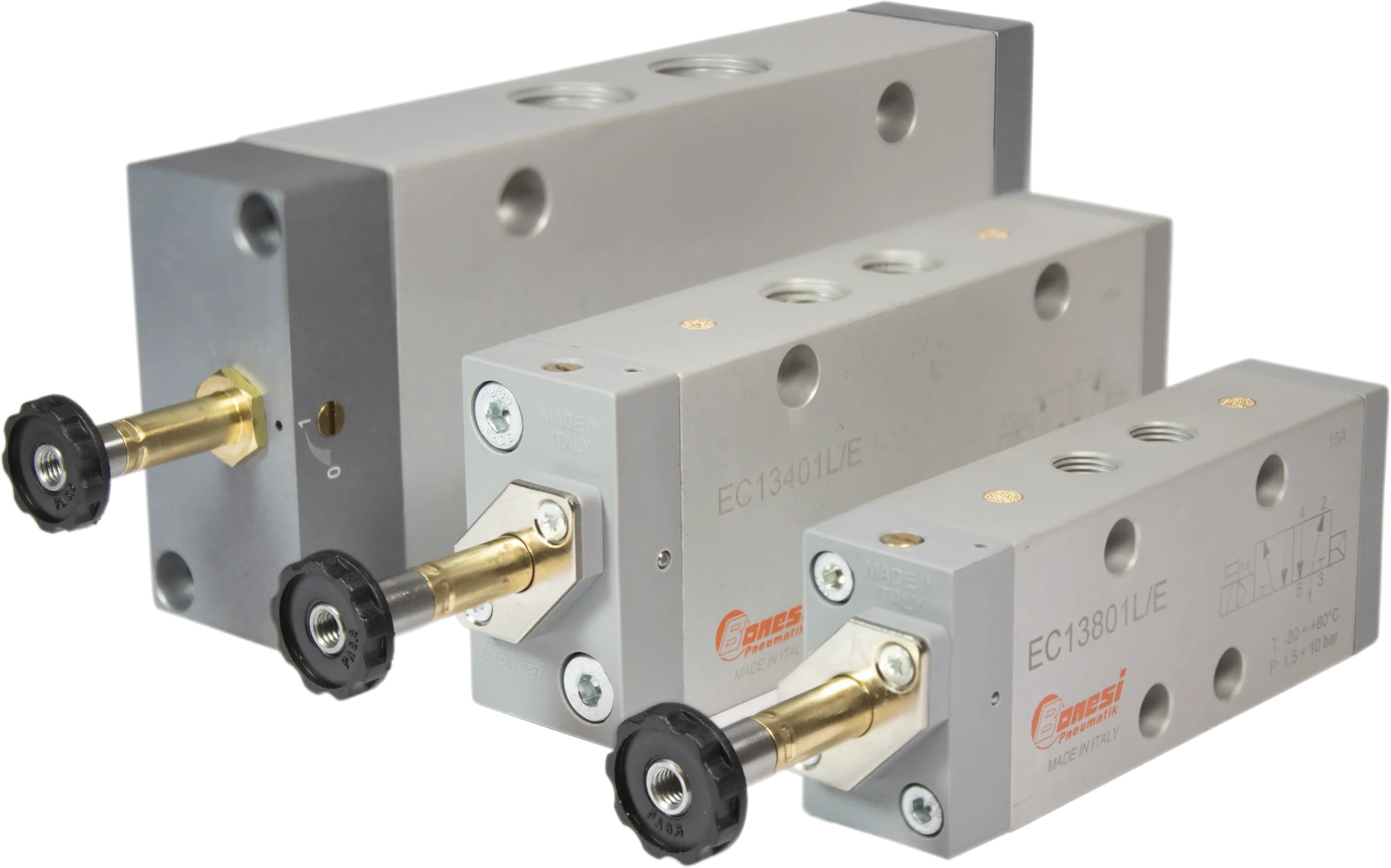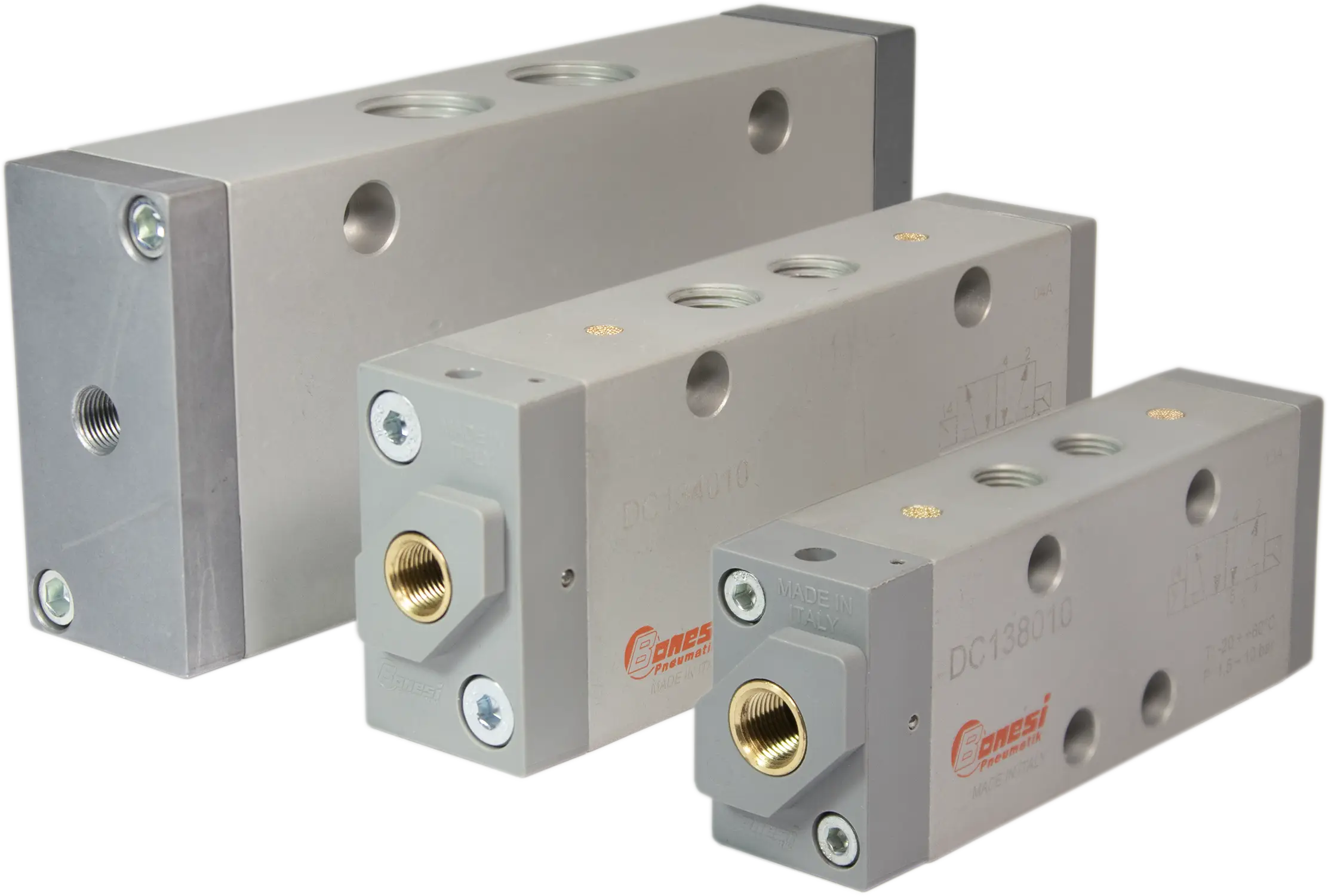 Il corpo è realizzato in lega di alluminio anodizzato, le parti interne in metallo a garantire elevata affidabilità, robustezza e performance. Le valvole Bonesi Pneumatik possono essere azionate a comando pneumatico o elettropneumatico, a spola o a otturatore. Sono costruite in taglie 1/18”, 1/4”, 1/2″, 3/8”, 3/4”, 1”. In gamma sono presenti anche valvole a norma ISO e a norma NAMUR.